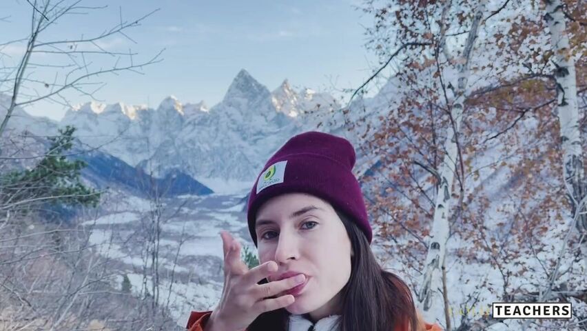 Вершина горы манила, когда брюнетка в одежде встала на колени перед парнем. Она оседлала его член губами, отсасывая с чавканьем, слюни текли по худому телу, а ветер гнал её стоны. Крупный план поймал, как она смаковала ствол, глаза загорелись страстью. Сперма выстрелила в её рот, заливая губы. Её улыбка намекала на новые горные приключения.